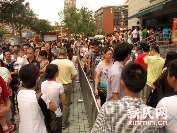 图说:上海海洋水族馆的售票处前排起了长队。新民网记者 沈文林 摄
