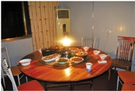 在大家吃得正欢时,岸边老农又送来一只汽灯,笑容满面地和大家打着招呼。周站长说:“这位老农是捕鱼为生的,很早就办了捕捞证,很配合我们工作,还主动给我们在一个岛上修了一条路。今天晚上吃的蔬菜,就是开路上岸后,咱自己种的。”