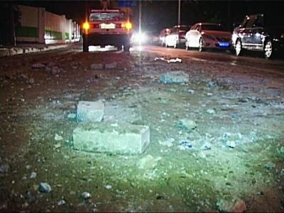 前晚11点半,玄武区老宁栖公路上突然出现了一条百米长的渣土地带,平坦的柏油马路变成了崎岖山道,不少底盘低的轿车在路过这里时,都遭了殃。据受损轿车司机反映,10点多就有很多渣土车大摇大摆从此处经过,路面上的水泥块都是从渣土车上掉下来的。民警随后请来环卫工人清理路面,并追查抛撒车辆的来源。(记者 贾晓宁)