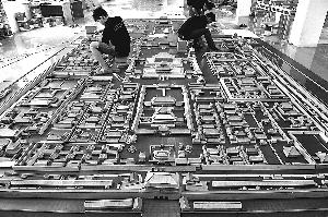 上周日晚间,这座面积超过40平方米的模型悄悄离开了市规划展览馆,进了“医院”。而8名建筑模型界最有名的师傅,第一件事儿就是要摘掉模型上紧密粘连着的房屋,将所有底板更换为铜板。