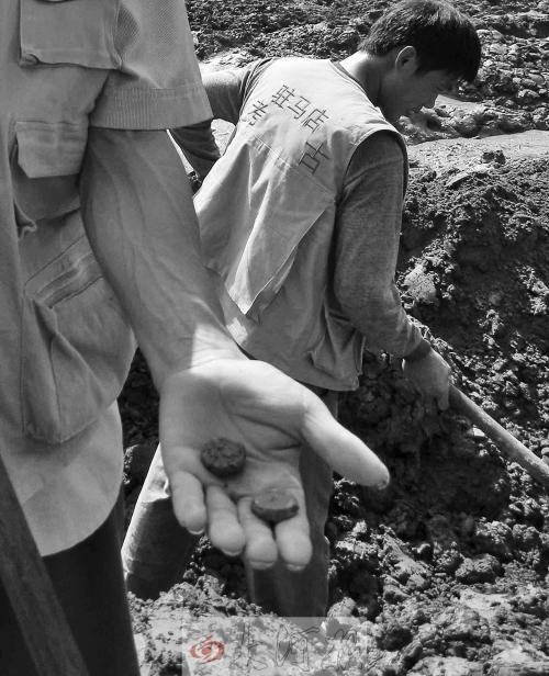 先前报道:西平一工地挖出古代铜钱 上百村民挖宝论斤卖(图)