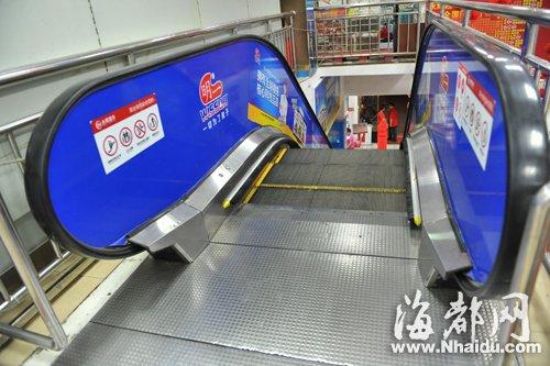 昨晚8时许,记者来到超市时,受伤小孩已被送往医院抢救。可以看到,超市入口处一架通往二楼的扶梯已停用,扶梯下方拉起了警戒线,并用两辆购物车挡住。
