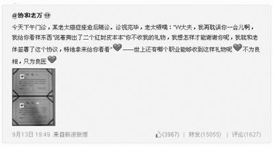 9月13日19时49分,万希润将此事发在了自己“协和老万”的微博上。