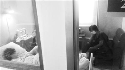 昨日下午4时许,正在协和医院血液科接受治疗的鲁若晴,消瘦的身体侧躺在病床上,不时因疼痛扭动身体。
