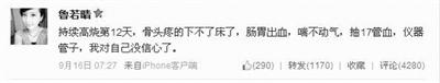 2012年4月 鲁若晴发布微博记录自己与白血病抗争时的点点滴滴,引发网友关注。