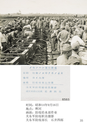 13日,哈市社科院731问题国际研究中心首次披露了一组诺门罕战争时的图片,这组图片共40张,全部是七三一部队在战场上进行防疫给水作业的图片。哈市社科院731问题国际研究中心杨彦君说:“在诺门罕战争中,日本关东军首次使用了细菌武器,七三一部队的参战照片就是最好的力证。”