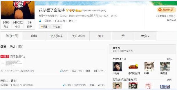 网络名人“花总丢了金箍棒”自曝已获自由(图)