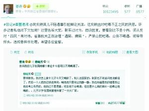 发“哀诉”帖的母亲名叫楼晓芳,54岁,身在浙江;被求助的蔡奇因为以真实的官员身份发表微博而在网友中闻名。此事随即引发网民热议,有网友戏称:前有坑爹坑妈,如今这位母亲的做法则是在“坑儿子”。很多媒体也对此进行评论,“浙江省委组织部长都发话了,这位公务员可谓拿到了‘免酒令牌’,估计以后谁也不敢灌酒了。”“这位公务员同学,你妈和省委组织部部长,只能帮你帮到这里了。”而有更多网友则将关注点投向了公款吃喝现象。