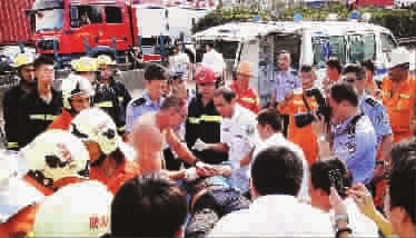 这位外籍男子是在驾车经过时,从后视镜中看到身后发生了意外,立即在应急车道停车,下车帮忙。当时消防和警方还未赶到,他第一时间靠近严重变形的小轿车,一边安慰伤员,一边脱下衣服为他们包扎。待吊车赶到后,他协助喊口令,拖离集卡,并助消防官兵搬开严重变形的POLO车,从中救出两人。