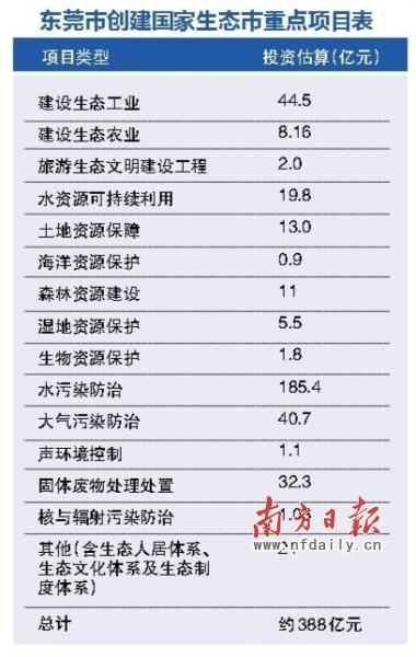 东莞市创建国家生态市动员会议将于今日召开,根据此前公布的国家生态市建设规划,东莞将在未来数年时间里投入388亿元推动84项重点项目建设。那么,这么大规模的一笔资金从何而来,又将如何分配,确保把钱花在刀刃上?