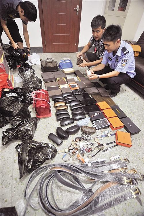 16日,解放派出所民警接到市民举报后,立即对这家铺面进行执法检查,查获大量的名牌眼镜、名牌香水、名牌皮带等。店里的一男一女,均无法提供相关进货票据。这两人都姓陈,均是广东人。审问中,其中的男店主陈某供认,这些假冒注册商标的商品,全是从广东进货。他们打着“名牌”的旗号,将进货仅20元/只的商品,以200元/只不等的价格销售出去。最贵的“名表”和名包,进货价也不过200元/只左右,却以2000元/只不等的价格销售。“好多人一听说是‘名牌’,有些根本不看货就掏钱买了。”陈某说,顾客买的是面子,却不知道拿的是假货。