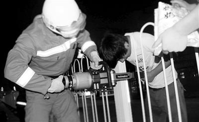 男子打赌钻马路护栏致头部被卡 嗑瓜子等救援(图)