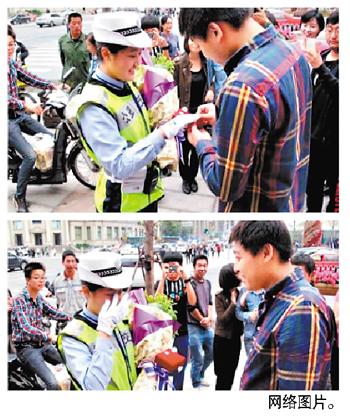 男子违章被查恋上女交警 求婚成功喜抱美人归