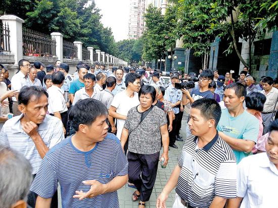 记者昨晚再度来到现场看到,翠湖花园门口此时有超过200人聚集,并拉起“维护业主合法权益”等相关字样的横幅,不少人情绪相当激动,很多人都同时用手机记录现场情况。