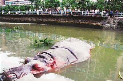 ■ “越狱”的河马在月眉河上显得悠闲自在 图 CFP