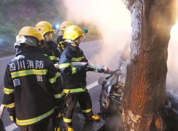 越野车自燃 车主弃车撞上大树后才停