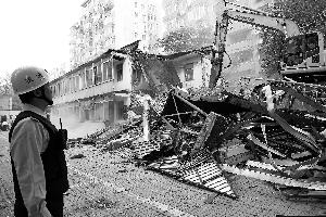 上午9时,三辆铲车一起发动,拆除工作拉开序幕(见图)。从30年前搭建起的违法建筑马上就要从2号院消失。记者了解到,小区内因不同需求一共搭建了33间违建房,多用于自住或是出租。而此院物业的办公地点也属于违建。
