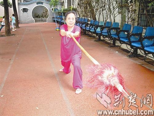 “她现在成了‘武痴’,什么都想学,家里都成了兵器库。”老伴说,他也练太极拳,但不像婆婆那般痴迷。