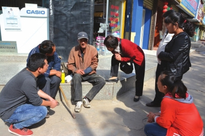 几分钟后,老人情绪稍显平稳,开始对关切询问情况的热心市民诉说情况。老人叫张富银,76岁,从定西老家来西固看望大姐,下车以后找不到大姐的家,由于半身不遂,拄着拐杖行走十分不便,再加上无钱吃饭,最终在既累又饿的情况下晕倒。