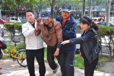 老人街头晕倒摔伤 众多市民买水买食物相助(图)