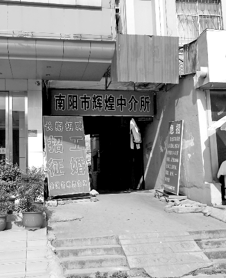 记者在南阳市人力资源与社会保障局采访时,相关负责人说,南阳市辉煌中介所没有合法手续,属于“黑中介”,在以往历年的执法检查中,都发现其在违法经营,每次都对其采取了取缔措施,但对方在检查过后还是照样营业。由于劳动执法部门的执法力度有限,未能从根本上杜绝其违法经营活动。