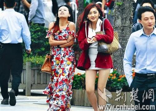 图为:雨停之后气温骤降,街头又现美丽“冻”人