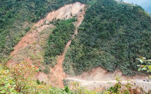 24日上午,记者从柞水县应急救援指挥部了解到,为了防止次灾害的发生,由县公安、交警等部门已经联合对进入滑坡点道路进行了封闭,记者一行在村民指引下徒步绕过一座山后从对面山顶俯视到了事发现场。