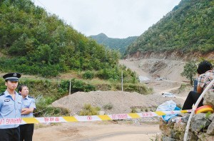 当天上午12时许,记者穿过茂密的树林看到,对面的一座山几乎整体滑塌,滑塌后的山体裸露出了褐色的岩石,滑塌的山石基本掩埋了已经修好的尾矿库区,事发现场不时传来轰隆隆的铲车作业的声音,3辆大型挖掘机、120急救车等停靠在路边等候。“由于沟窄路险,救援施工场地小,加之塌方量比较大,给救援造成了很大困难。”参与救援的干部透露说。