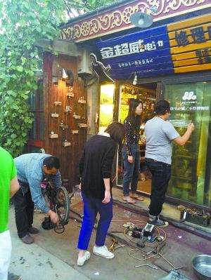 一路走下来,像自行车铺这样的小店很多,店主有北京的、外地的,也有外国人。几条老街的老门脸房虽然装饰风格不同,但却浑然一体。一眼望去,灰砖、瓦顶,透着这里是老北京。