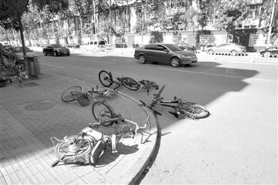 昨日,通州北苑地铁站附近,自行车被大风刮倒。