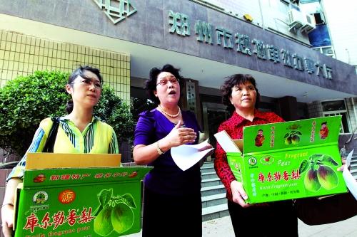 昨日,商报以《建两座跨河桥,引各方“掰手腕”》为题对此进行了报道。而下午,郑州市鑫苑名家小区业主,策划了一个行为艺术,4个业主抱着4箱鸭梨走进了郑州市规划局,给规划局“压力”。