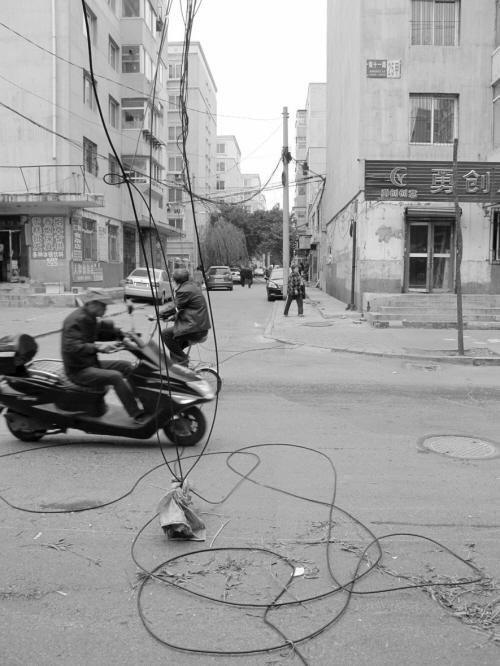 10月10日7时许,铁西区南十一西路齐贤街与保工街之间,通过此处的机动车都小心翼翼,躲避悬在空中的电线,“你看电线明显是被抻断的,金属丝都露在了外面,而且是好几根电线都断了,在半空中晃来晃去,一不留神就容易甩到自己身上。”