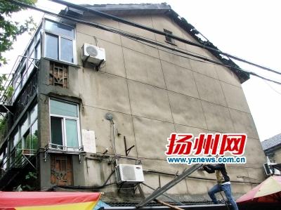 昨天上午,在社区工作人员的陪同下,记者来到了梅岭新村。记者看到,靠近史可法西路房子屋檐确实很危险,有木头掉落。