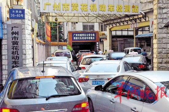 在广州水荫路黄花机动车检测站等候的车龙 羊城晚报记者 朱文海 摄