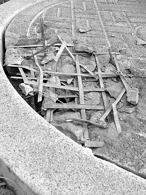 污水井盖破损“露馅” “筋骨”竟是竹篾