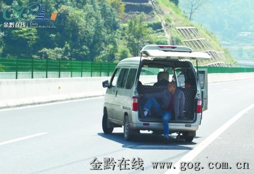 男子面包车高速路中间抛锚 后备箱里淡定坐等救援