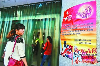 在巢湖市中心一家大型购物中心的大门口,一张大红的“敬告”(如图)惹来顾客频频驻足。公告里称,“10月13日重阳节当天,×××所有的门店都将放假一天,让员工回家陪伴父母。”