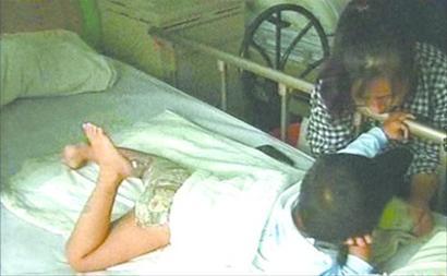在医院里,彤彤每次换药都要拼命大叫,一旁的父母非常心疼。