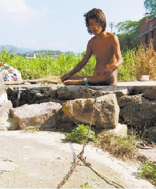 老父把儿用铁链锁屋外木桩五年 任其雨淋日晒(图)