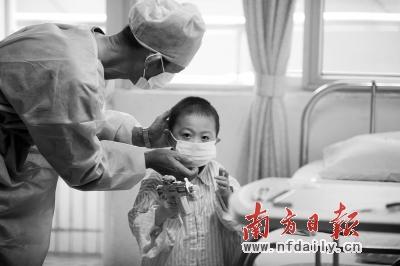 乖巧可爱的小男孩倚着病房的墙,瞪着大眼睛,好奇地望着大家,还不时挥手。这是昨日记者在中山大学附属第一医院小儿心脏外科病房看到的场景。