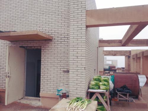 记者上到顶楼看到,天台上不仅没有灯,而且还堆放了不少杂物:随意堆放的残土、装修垃圾,还有居民们晾晒的白菜和大葱……若是摸黑通行的话,很容易就会被绊倒。此外,顶楼天台并没有防护栏,记者尝试从天台向地面望去,立刻有眼晕的感觉。