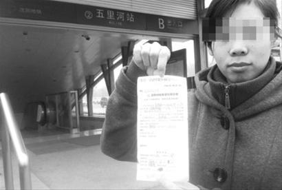 当天,五里河站的工作人员给刘女士出具了一张NO.1204234的沈阳地铁集团有限公司C联(车票处理凭证,乘客凭此联办理业务)的纸单。