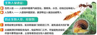 据介绍,生物入侵的主要途径有两种,一是自然入侵,即入侵物种随着气候变化,跟着风、水流、动物迁徙等侵入;二是人为活动,如贸易、旅游等出入境活动带入。“人为活动是生物入侵的主要途径。”万方浩强调。