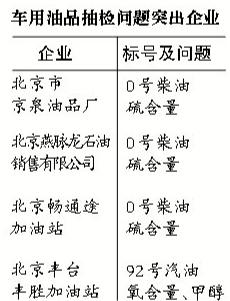 北京市工商局昨天公布对全市流通领域车用汽油、柴油的质量监测,硫含量超标依旧存在,北京畅通途加油站等4家企业因售不合格油品被曝光。