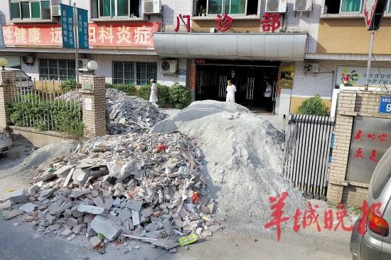 医院被余泥封门,医患出入“无门” 羊城晚报记者 陈秋明 摄