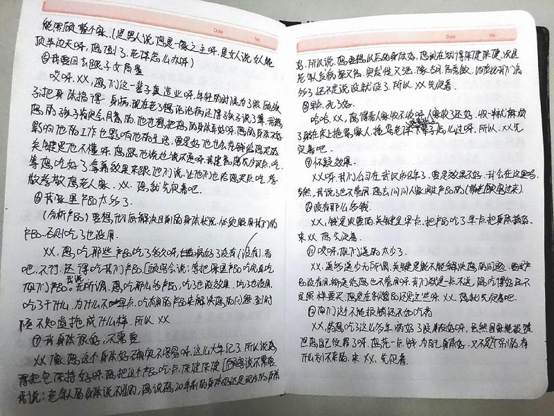 图为:公司员工的“话术”笔记,针对老人可能的疑问都有“标准答案”