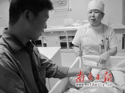 笔者了解到,21日下午,“小鱼儿”的父亲叶×山来到粤北人民医院,并了解办理出院手续的步骤。在家长接待室里,叶×山摸着“小鱼儿”的脸,闪现出慈爱的笑容,还不忘用手机给小宝宝拍照。叶×山告诉记者,他的大儿子因为先天性心脏病,治疗已花去10多万元,目前还有欠款未还,“大概借了5万块,现在已经还了两万多。本来要去找私人贷款,但人家说不贷。我现在就只能交三五千块钱,反正我就尽我能力。哎……从来没有打算不要小孩,感觉对不起他,最想就是把小孩抱回家里”。