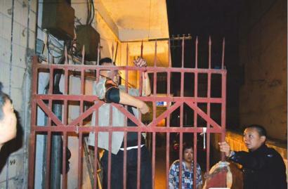事发男子左手被大门铁栏刺穿