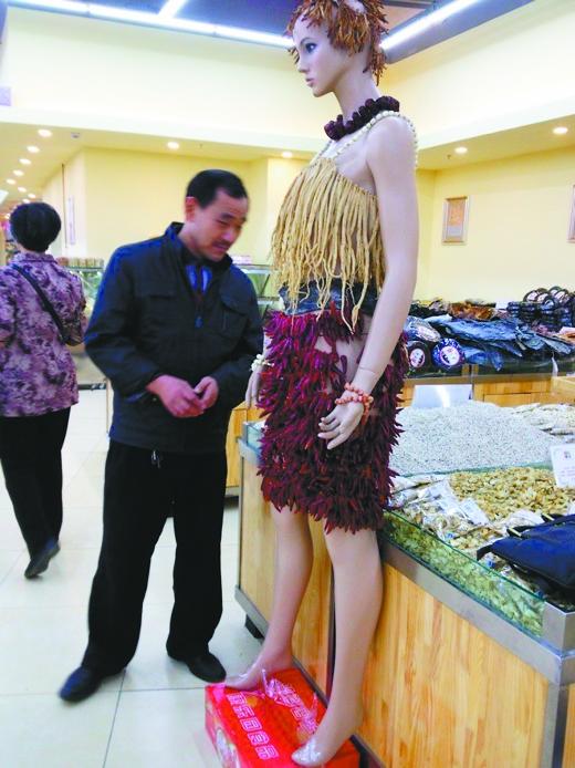 超市现“干货女” 模特穿海椒短裙红枣项链(图)