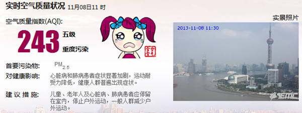 图说:8日11时上海空气质量监测数据。图片来源:上海环境保护局